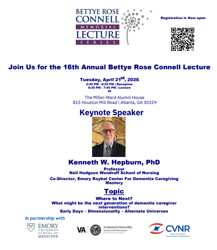 Established in 2009, the Bettye Rose Connell Memorial Lecture series commemorates Dr. Connell’s dedication to improving the lives of vulnerable elders. Each spring, distinguished regional and national researchers are invited to Emory University and the Atlanta VA Medical Center to honor her legacy and promote continued scholarship in this field. The 2025 Bettye Rose Connell Memorial Lecture Series will be held on Tuesday, April 21, 2026, 5:30–7:45 p.m.
